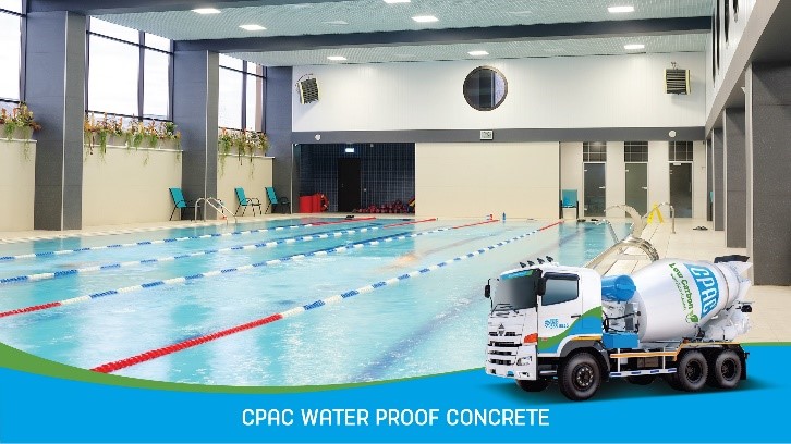 CPAC waterproof concrete is a specialized type of concrete produced from SCG cement, fly ash, water, selected additive, chemical admixtures and aggregates. This concrete is designed to be highly resistant to water penetration, making it ideal for structures that need to withstand moisture and water exposure, resulting in high durable concrete. The concrete is suitable for a variety of applications, including basements, water tanks, swimming pools, and other structures exposed to water. It has a compressive strength of of C240/280 KSC (C24/28, MPa) at 28 days with excellent pumpability. The concrete made from a mix of SCG cement, water, selected chemical admixtures and aggregates. The specific formulations meet local construction standards and requirements.