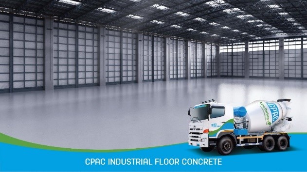 CPAC industrial floor concrete is a specialized type of concrete designed for use in industrial settings. This concrete is formulated to meet the demanding requirements of environments such as warehouses, factories, and loading docks. In combination with proper trowelling finish, it has high flatness concrete floor with durability to withstand heavy loads and frequent traffic, making it ideal for areas with heavy machinery and constant use. That give concrete floor has low maintenance. The compressive strength of concrete is C280/320 KSC (C28/32, MPa) with excellent pumpability. The concrete is made from SCG cement, fly ash, water and selected admixtures and aggregates. The specific formulations meet local construction standards and requirements.