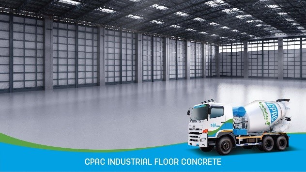 CPAC industrial floor concrete is a specialized type of concrete designed for use in industrial settings. This concrete is formulated to meet the demanding requirements of environments such as warehouses, factories, and loading docks. In combination with proper trowelling finish, it has high flatness concrete floor with durability to withstand heavy loads and frequent traffic, making it ideal for areas with heavy machinery and constant use. That give concrete floor has low maintenance. The compressive strength of concrete is C350/400 KSC (C35/40, MPa) with excellent pumpability. The concrete is made from SCG cement, fly ash, water and selected admixtures and aggregates. The specific formulations meet local construction standards and requirements.