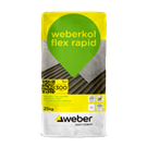 Weber.kol.flex.rapid is a fast hardening cement based tile adhesive improved with additional properties.