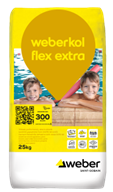 Weberkol flex extra, is a polymer added, very flexible tile adhesive mortar with reduced slip, extended open time and improved with additional qualities