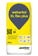 Weberkol XL flex plus, is a polymer added very flexible tile adhesive mortar with reduced slip, extended open time and improved with additional qualities.