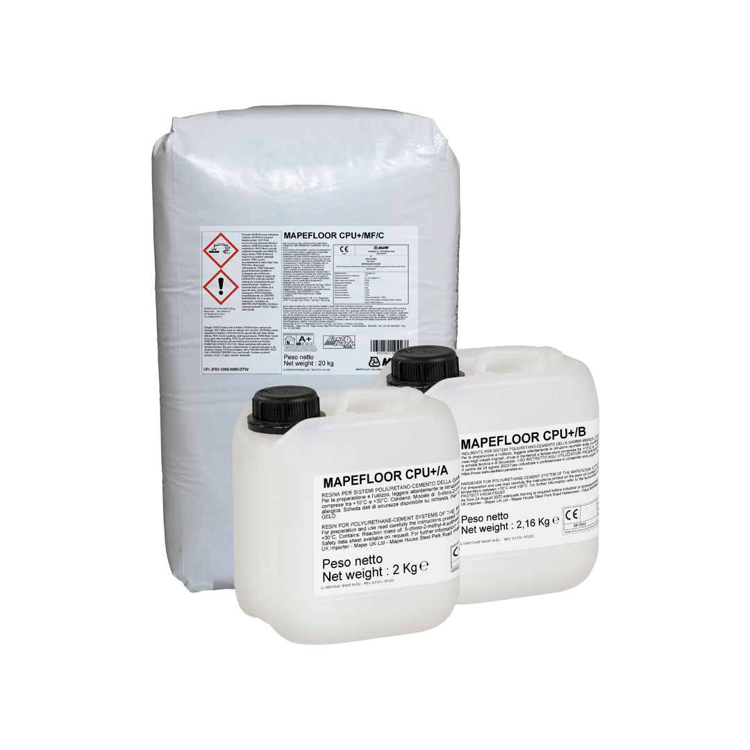 Mapefloor CPU+/MF is a four components, polyurethane-cement self-smoothing mortar, trowel-applied in 3 to 6 mm thickness, developed by MAPEI’s Research Laboratories, microbe-resistant and easy to sanitize for the protection of industrial floors, featuring high chemical and mechanical performance and thermal shock resistance up to +80°C, with operating temperatures range from -20°C to +70°C, depending on the thickness.