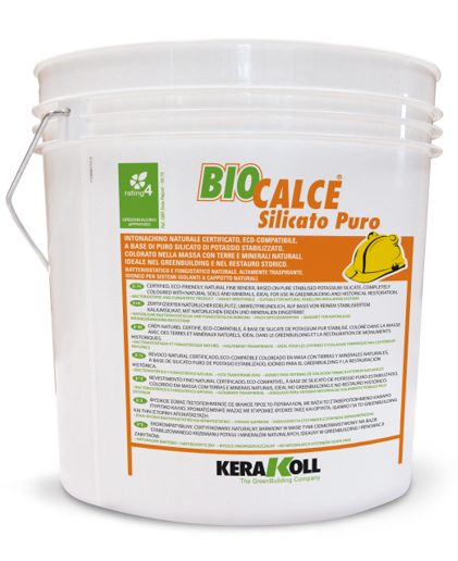 Biocalce Silicato Puro is a certified natural plaster based on pure stabilized potassium silicate, colored in the mass with natural earths and minerals.