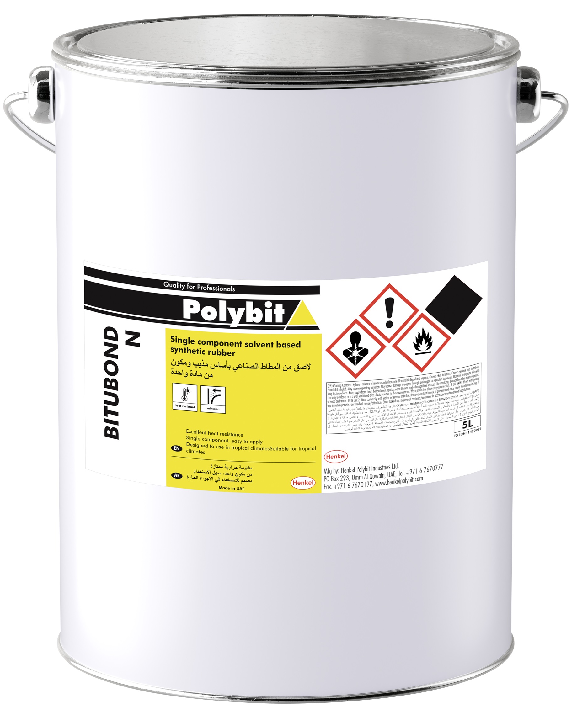 BITUBOND N - UAE is a single component solvent based synthetic rubber used as an adhesive for bonding bitumen fiber boards and other materials.
