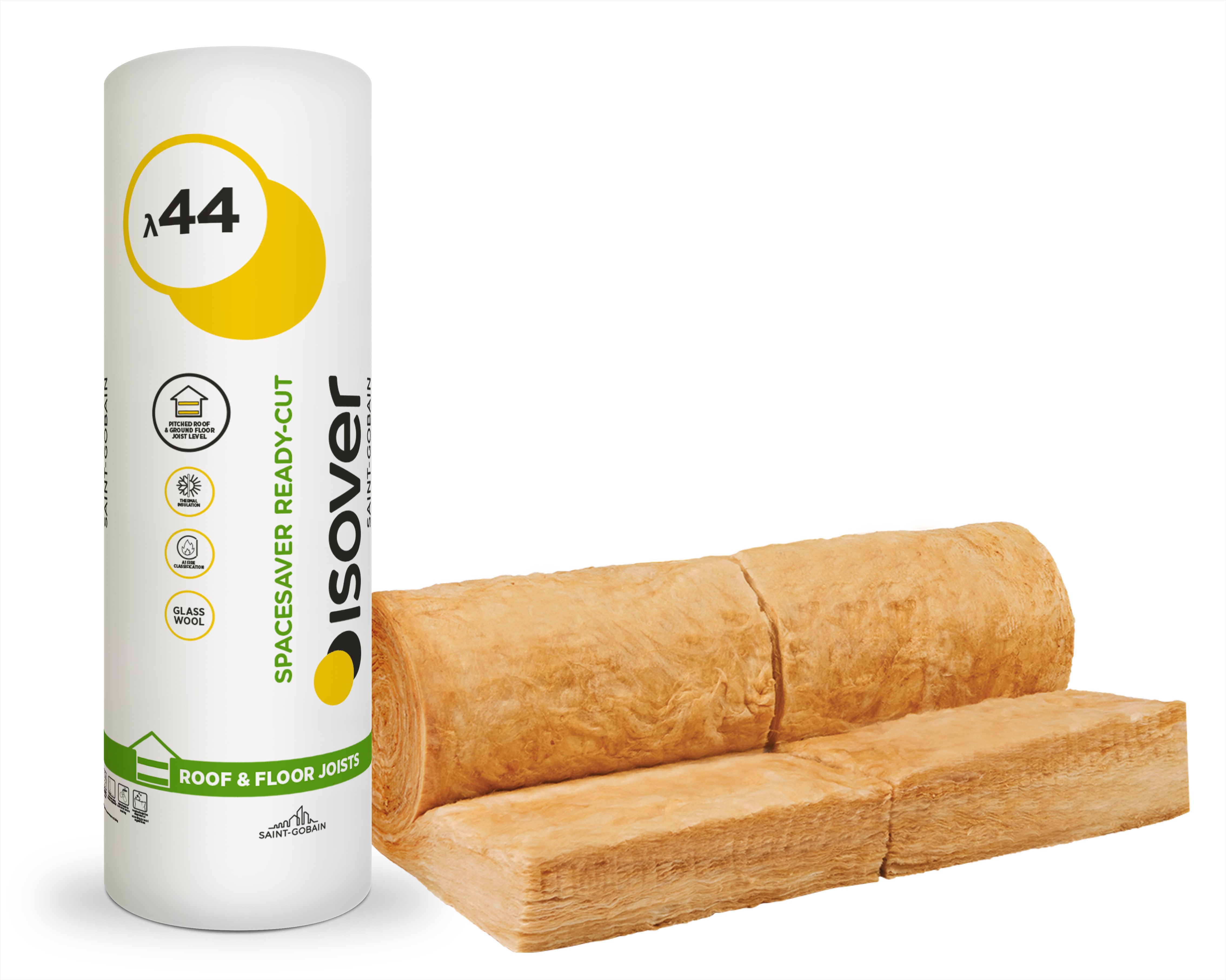 Isover Spacesaver Ready-Cut is a glass mineral wool roll, which is pre-cut to fit between common joist spacing at ceiling level. It is supplied in longer-length rolls to help increase the speed of installation and ensure more efficient delivery and storage. Other products within the range include Isover Spacesaver, Isover Spacesaver Lite and Isover Spacesaver Plus. Isover Spacesaver Ready-Cut can also be considered for use between the joists in suspended timber ground floors and flat roofs.