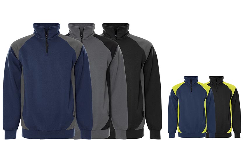 Sweatshirt made of recycled polyester and cotton. A durable and comfortable sweatshirt in 2-coloured design with short zip and brushed inside. Approved for industrial laundry. Concept: Skarup