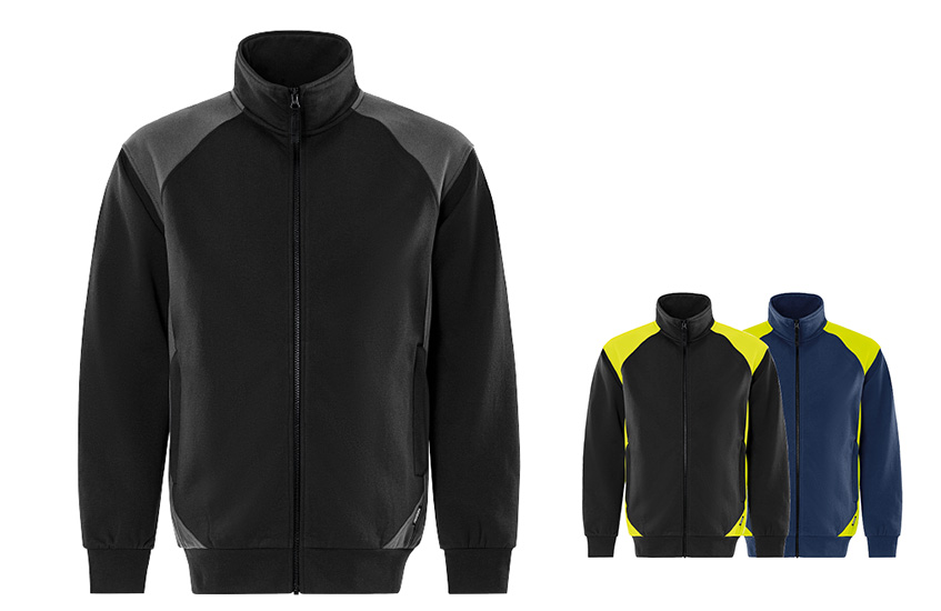Sweatshirt jacket made of recycled polyester and cotton. A durable and comfortable full zip sweatshirt in 2-coloured design with brushed inside. Approved for industrial laundry. Concept: Skarup