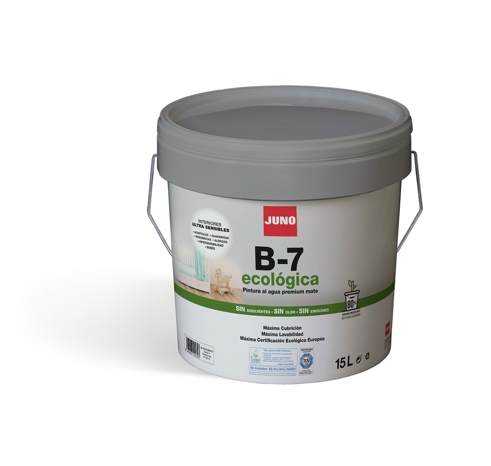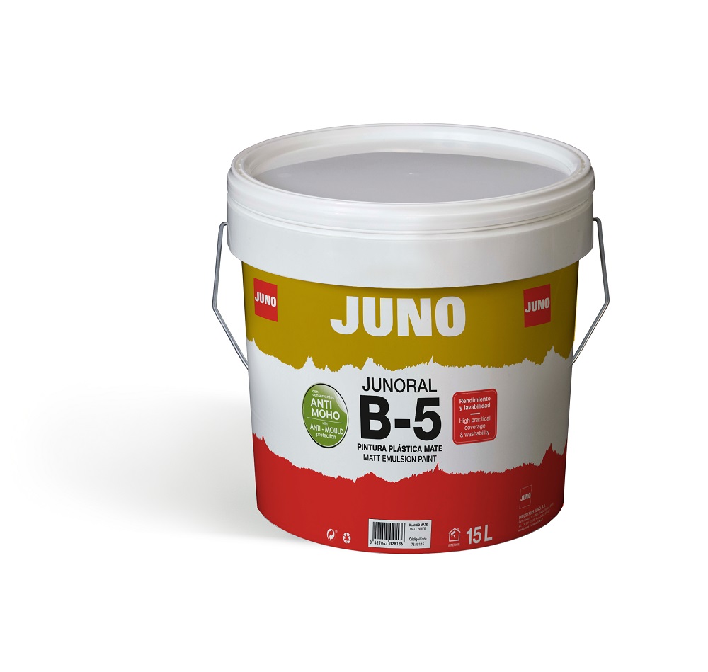 This EPD® covers all ranges of JUNO interior paints indicated below. The following is a brief description of the product Junoprof, as well as its main characteristics: Junoprof is a plastic paint calibrated with the Junomatic Tintometric System, which has been added with preservatives that prevent the formation of mold on the surfaces where it is applied. The product is formulated with acrylic copolymers dispersed in aqueous medium that provide a resistant coating with good washability, and is ideal for professional use due to its good performance, breathability, fire resistance, as well as the wide range of colours that allows in its execution.