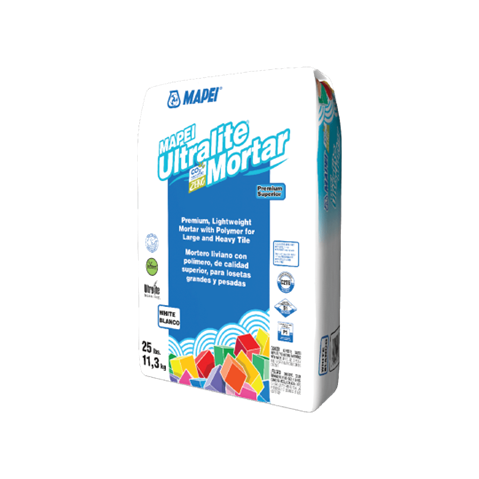 Mapei Ultralite Mortar Universal is a premium-grade, lightweight, single-component mortar for large-and-heavy-tile and non-sag applications, and that can also be used for thin-set mortar installations. This high-performance, polymer-modified mortar features a very low emission of volatile organic compounds and includes an offset of greenhouse gas emissions. It is formulated with Easy Glide Technology for ease of application, and with BioBlock technology for mold and mildew resistance. MAPEI Ultralite Mortar utilizes Ultralite Technology for twice the coverage of a standard thin-set mortar per pound/kg and contains more than 20% recycled content.