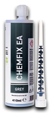 Chemfix EA is a two component styrene resin based chemical anchoring injection system produced by Chemfix Products Ltd. It was developed principally to anchor threaded rods into masonry, hollow wall and concrete installations. Used widely for low load applications.