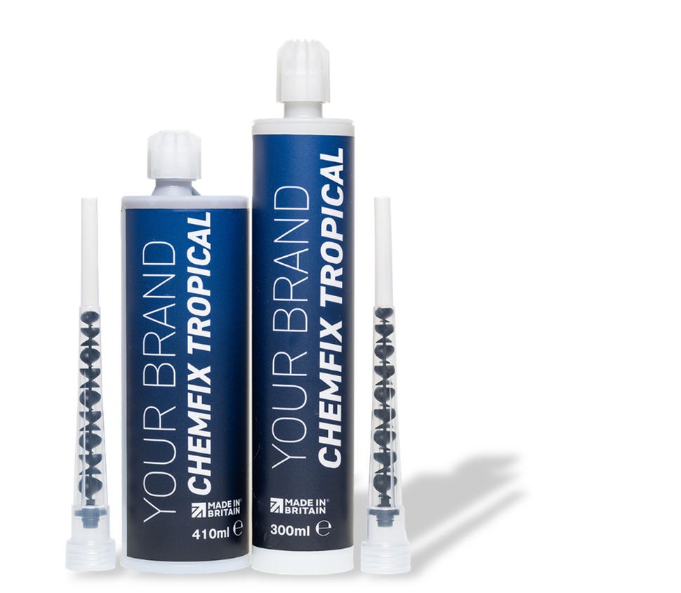 Chemfix TROPICAL is a styrene free two component specialist resin based chemical anchoring injection system produced by Chemfix Products Ltd. It was developed principally to anchor threaded rods into concrete, and for masonry and hollow wall installations. Used widely for installations in high temperature and humidity situations.