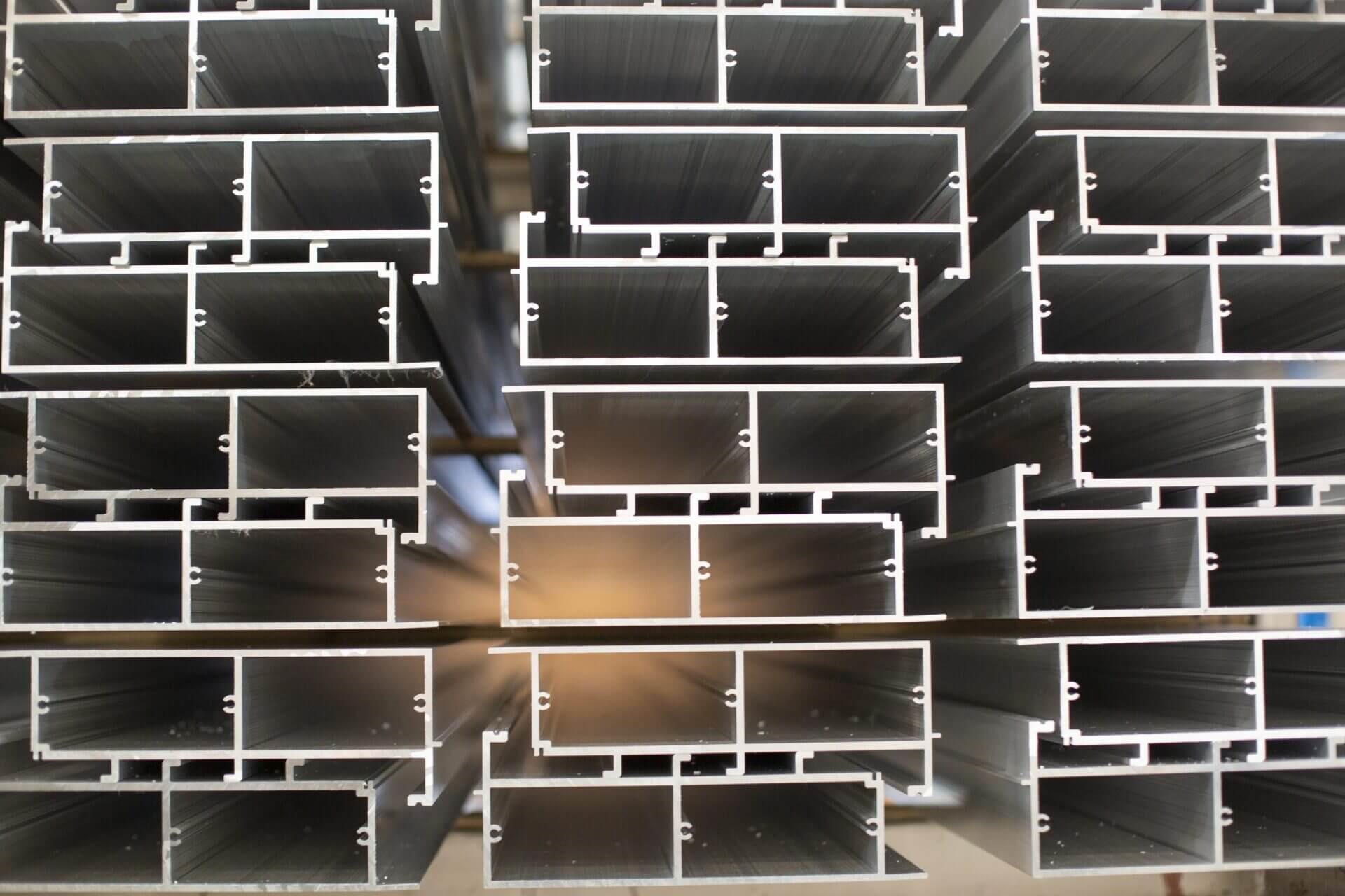 Aluminium extrusions in 6000 series alloy are approximately 97.23% to 98.94% primary aluminium by mass, with alloying elements composing the remaining mass percent.