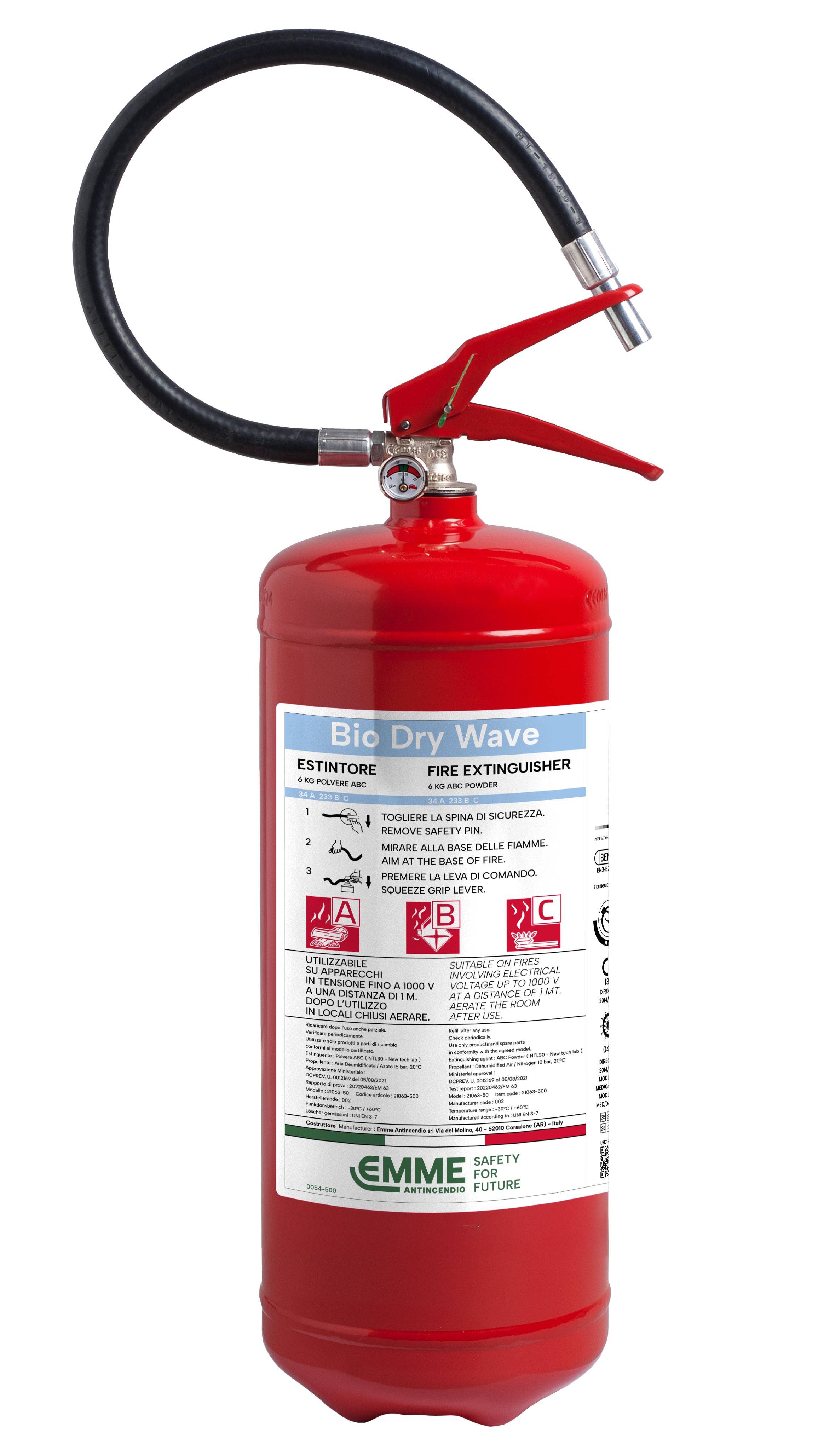 Family of Fire Extinguishers kg 6 Powder - 34A 233BC - UNI EN 3-7 - 100% Regenerated Powder