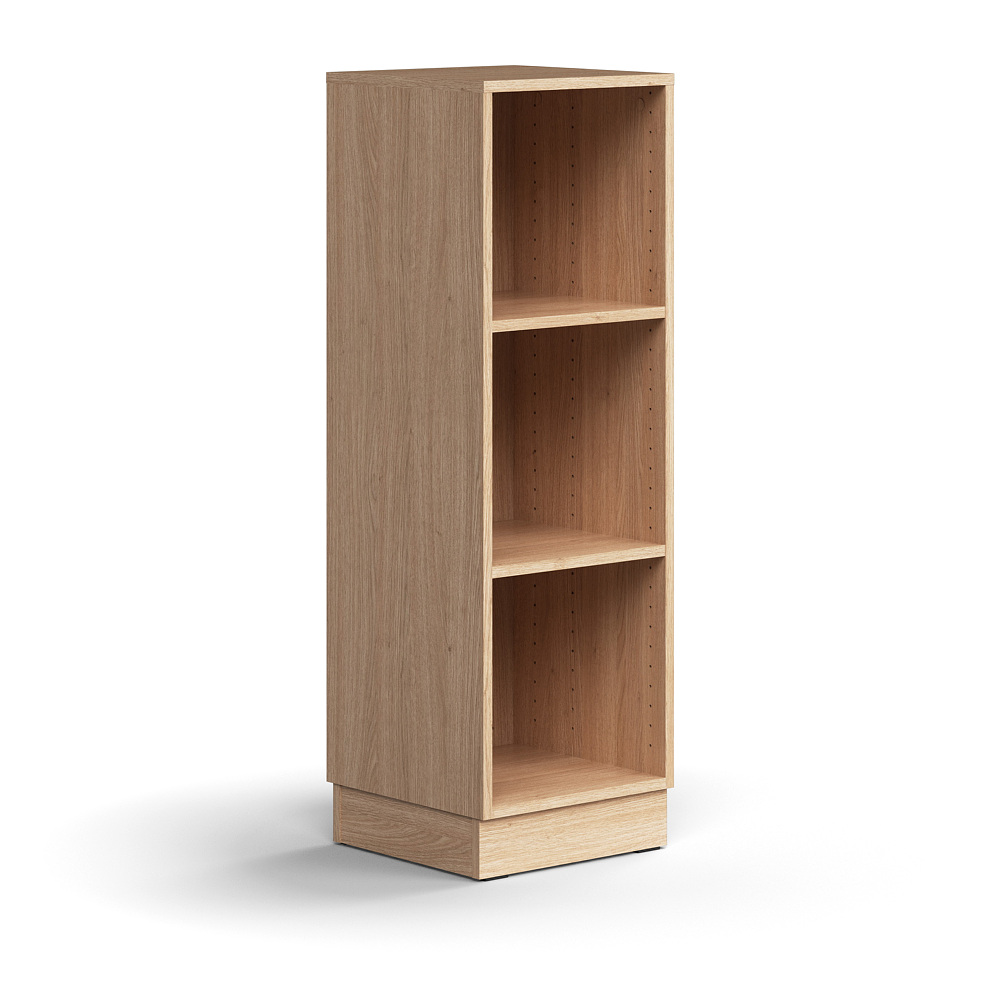 A modular laminate bookcase designed for efficient storage of books, folders, and office materials. The QBUS range is expandable, allowing for seamless integration of additional units.