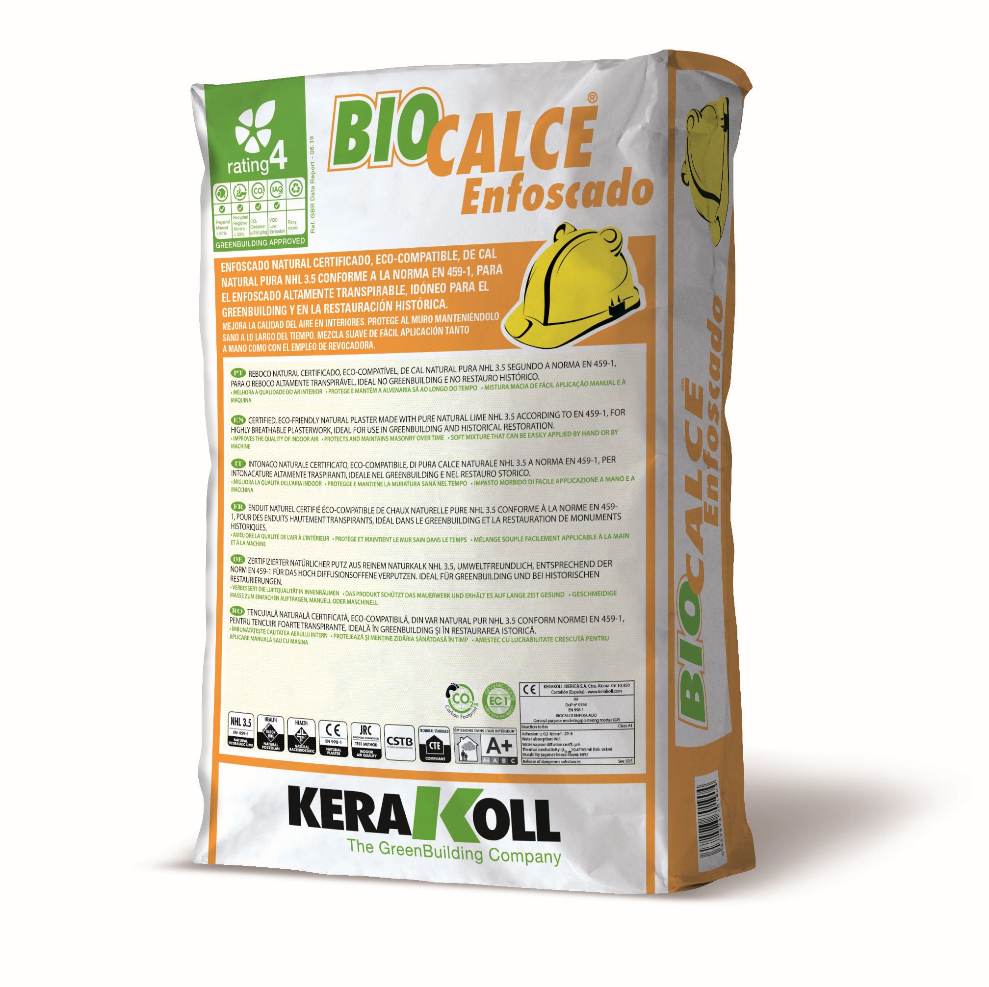 Biocalce Enfoscado is a certified, eco-compatible natural render made of pure natural lime NHL 3.5 in accordance with EN 459-1, for highly breathable rendering.
