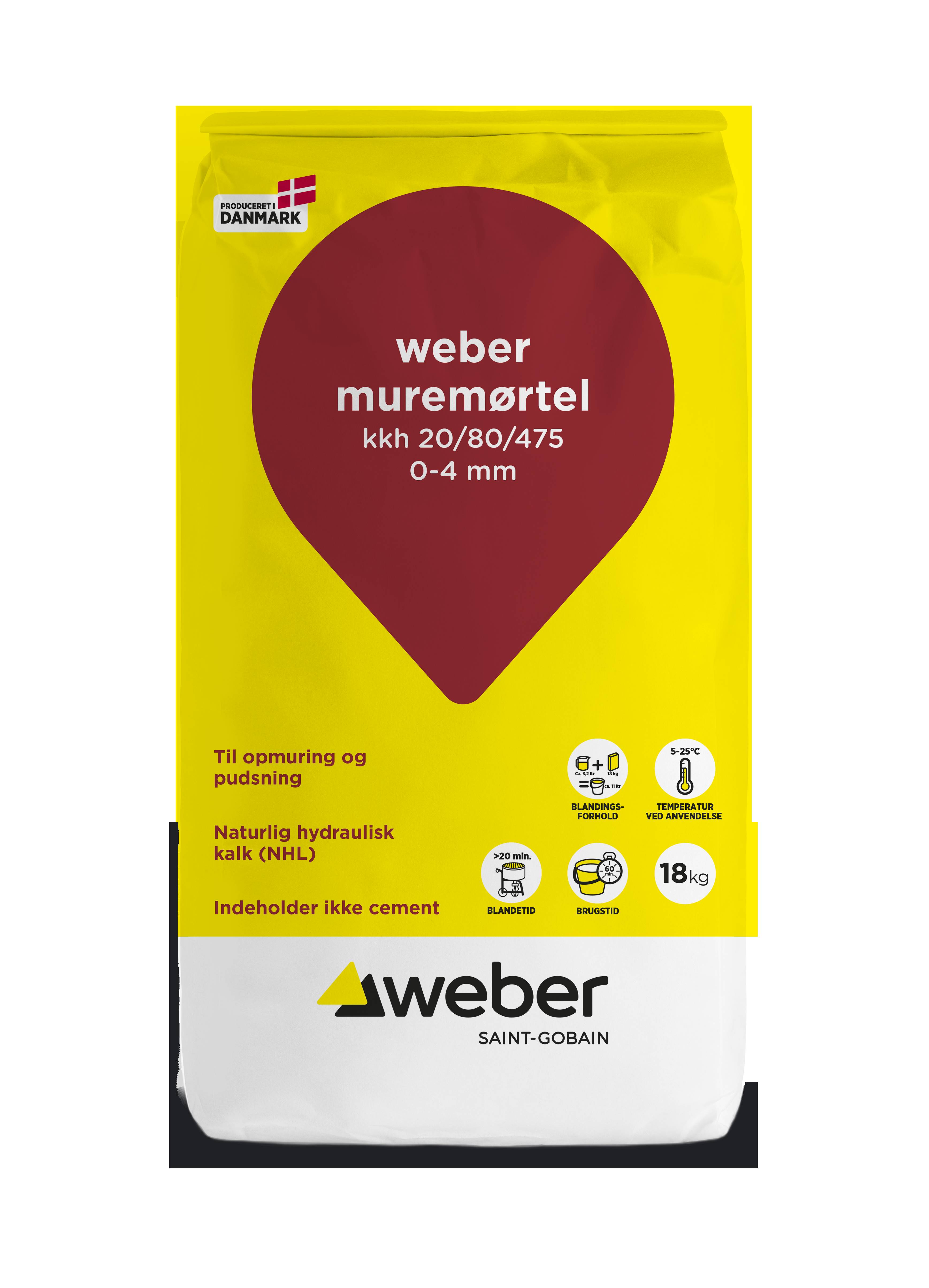 The weber Muremørtel KKh 20-80-475 0-4 mm is used for both new construction and restoration. The mortar is used both externally and internally for applications such as masonry, rendering, jointing, plastering work, and brick floors.