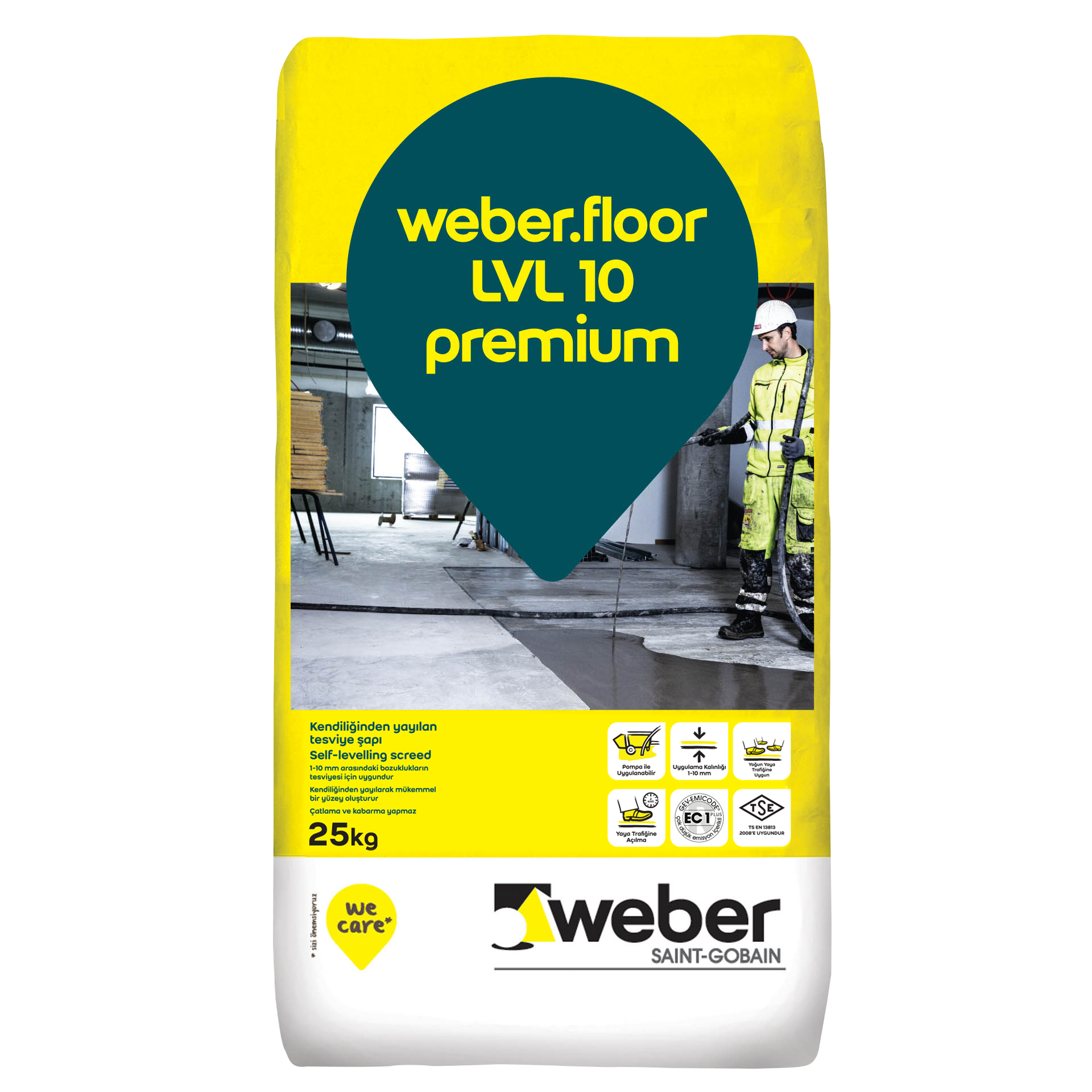 weber.floor LVL 10 premium:1-10 mm arasında uygulanabilen, çimento esaslı, kendiliğinden yayılabilen tesviye şapı