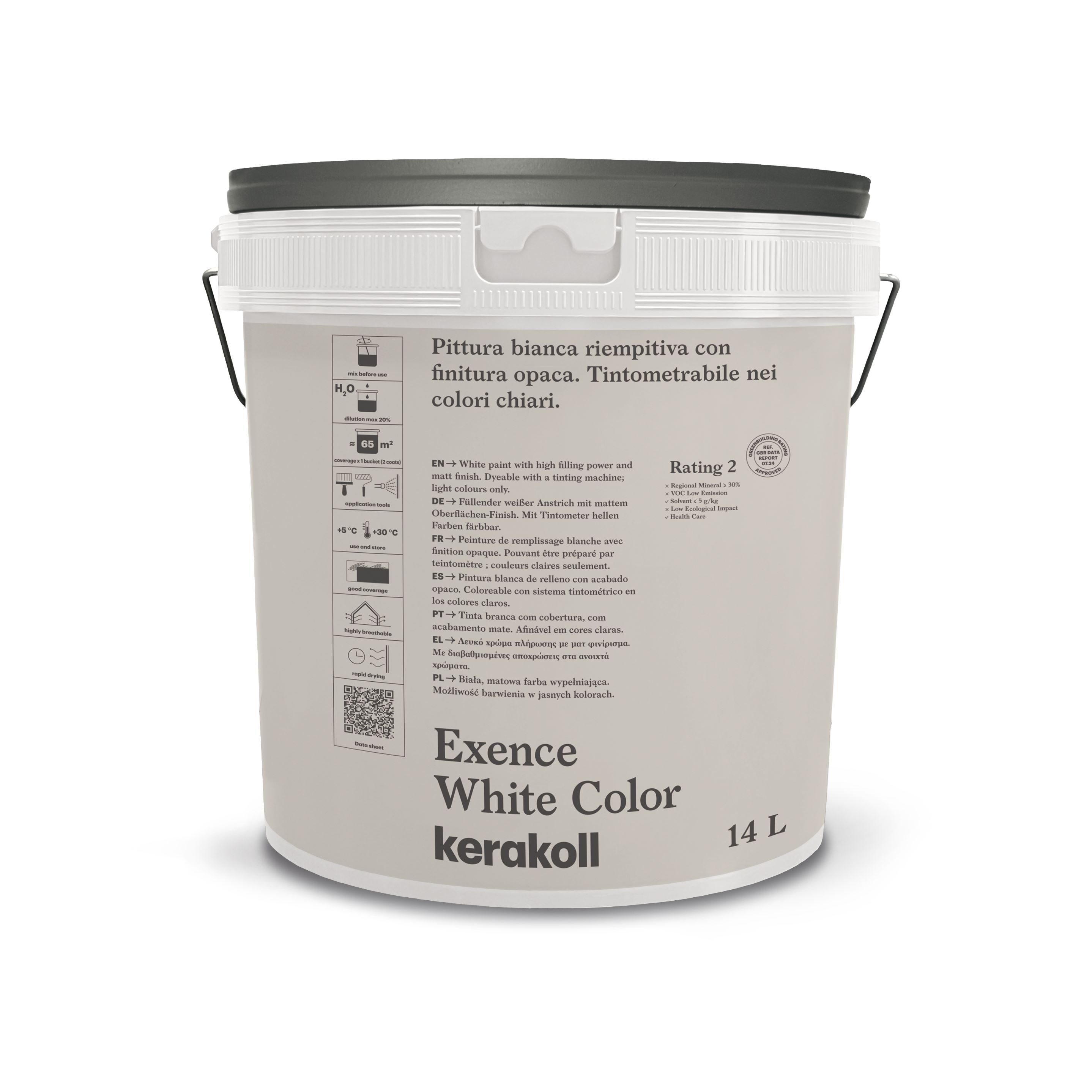 Exence White color is a filling paint with excellent coverage and a matte finish. Tintable in light colors. Interior use. Exence White Color features high filling power and an excellent level of whiteness. It is drip-resistant and easy to apply.