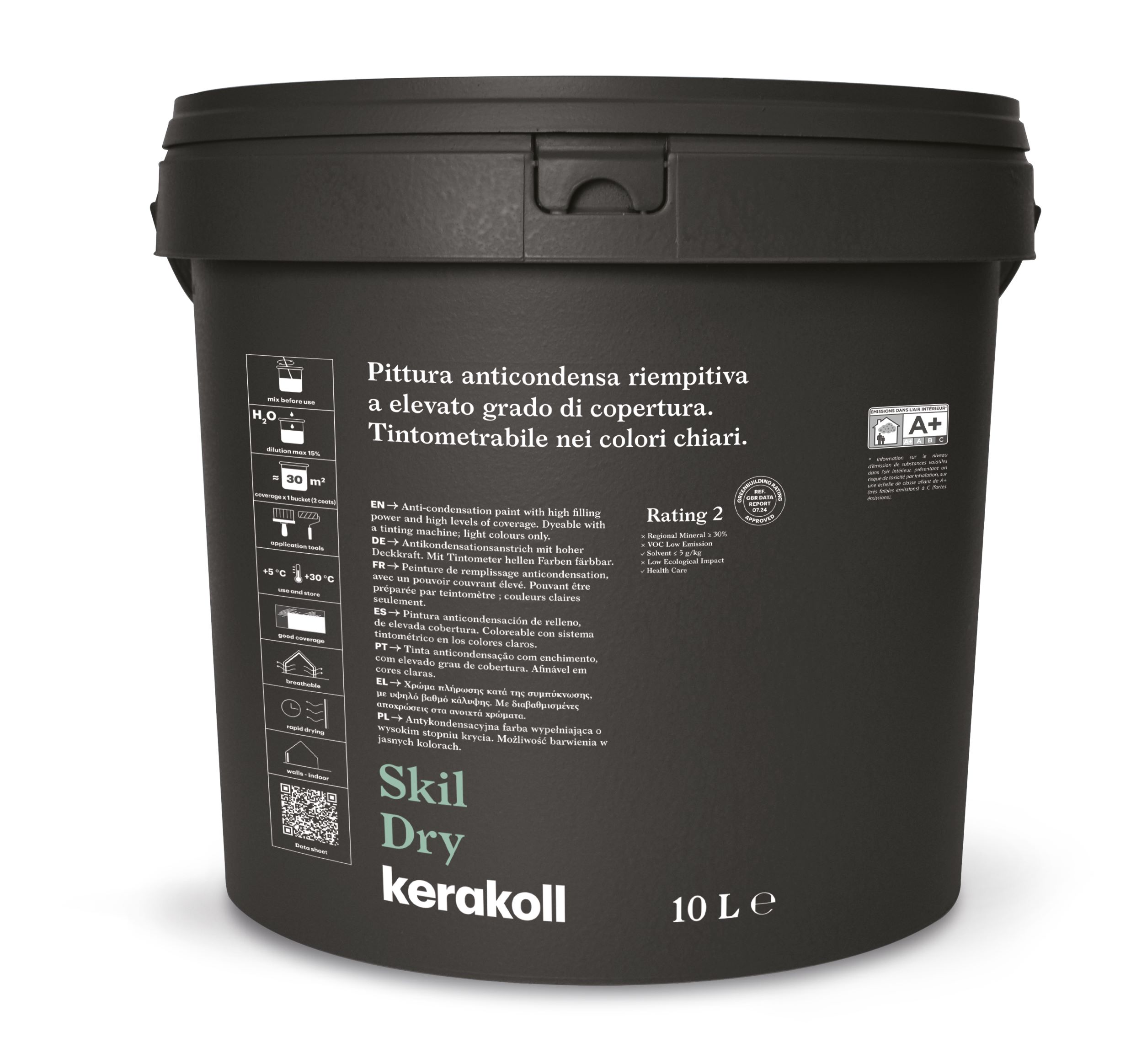 Skil Dry is a thermal, anti-condensation paint resistant to mold, with high coverage. Tintable in light colors.