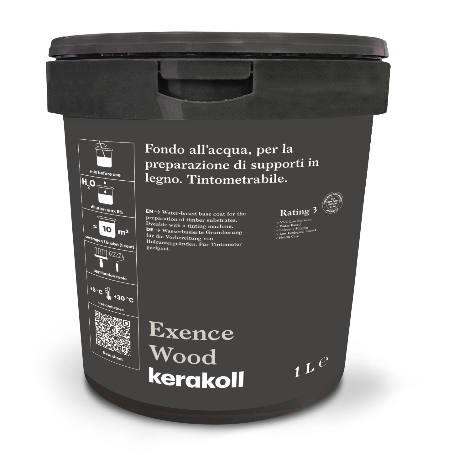 Exence Wood is a water-based primer for wooden surfaces, designed to enhance adhesion and improve the final aesthetic. Its filling properties block tannins, ensuring uniform coverage and vibrant color.