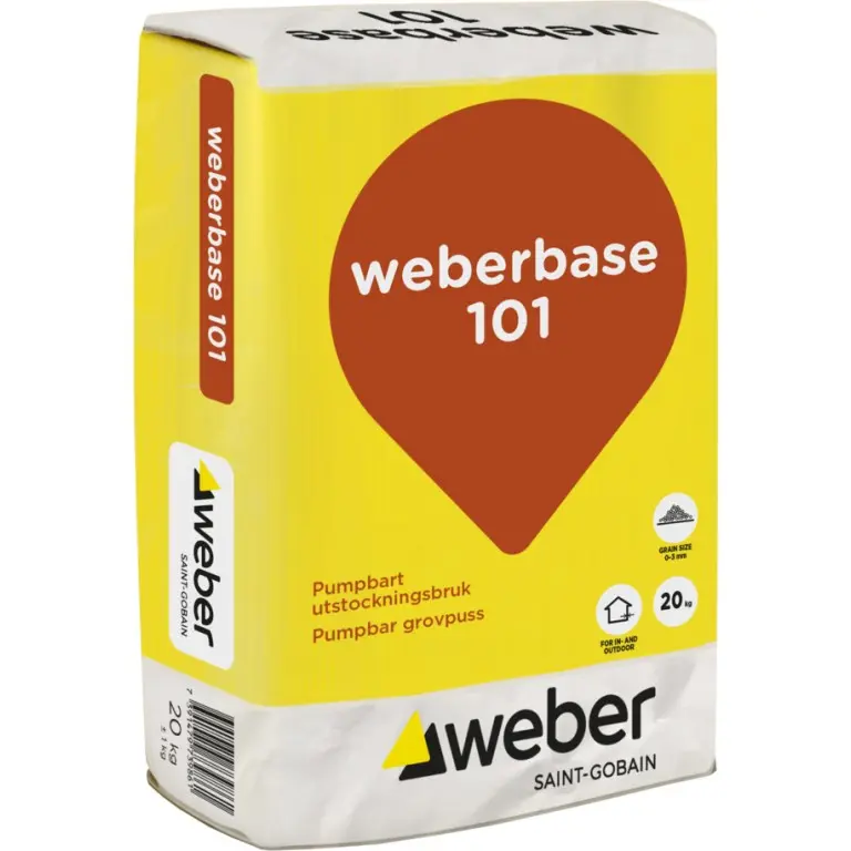 weberbase 101 utstockningsbruk A is used for rough plastering and priming where the requirements for the strength of the plaster layer are extra high. Do not use if the temperature is at risk of falling below 5°C during application.