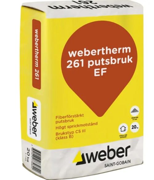 webertherm 261 putsbruk EF is a polymer and fiber-reinforced dry mortar. It is used as plaster in Weber Façade System EF, Serpomin EF, Serposol EF, Serpovent G2.