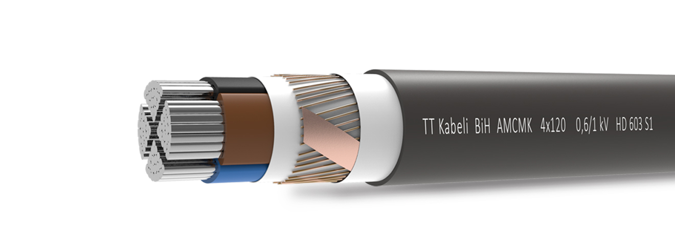 The cables in this group are foreseen for static outdoor application (with protection against direct UV-irradiation), in ground, within facilities, in cable canals, in concrete, in conditions where there is a danger of possible mechanical damages, but where the cable is not exposed either to systematic mechanical stress or heavier tensile strain. Used in electric power plants, transformer stations, industrial plants, metropolitan networks and other electric plants. Environment working temperature of these cables: -10 °C to +70 °C. As the representative product in this group of cables following cable was chosen: AMCMK 4x185.