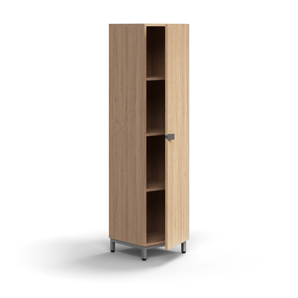 A modular laminate cabinet designed for efficient storage of books, folders, and office materials. The QBUS range is expandable, allowing for seamless integration of additional units.