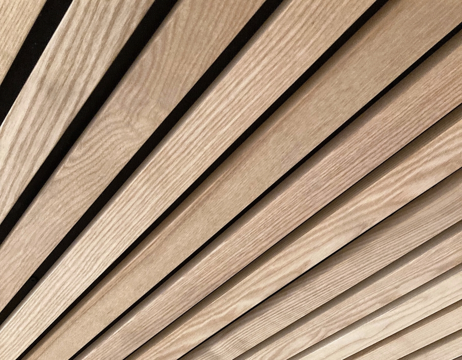 BCL ‘stock’ acoustic timber panel, using European hardwood solid timber slats, acoustic fabric, insultation layer and PPC Aluminium support rails – formed into panels approximately 600x3000mm (but can vary in size). Acoustic Timber Panel fully prefabricated, including anti-viral acoustic fabric, 25mm insulation layer into a composite acoustic panel for wall & ceilings, including basic support grid for internal wall installation. (note additional support grids may vary – contact BCL for more information)