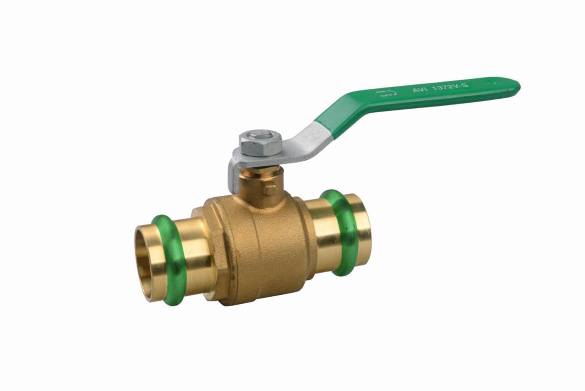 Lead-free Ball valve in full flow design, V-profile, with press sleeves, HNBR stem seal, working temperature -20℃-+150℃, tap water approved