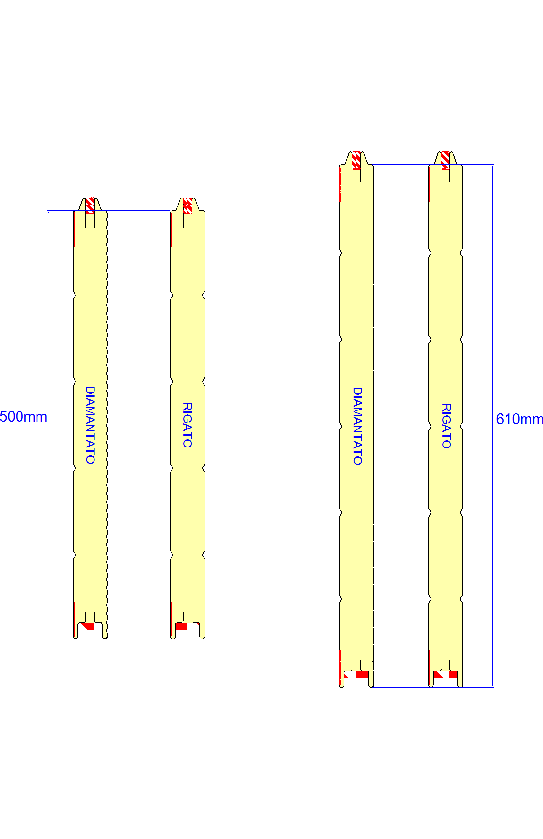 The external and internal surfaces of the panel are made by a galvanized and prepainted steel sheet (with recycled content). The polyurethane thermal insulation has a thickness of 40 mm.