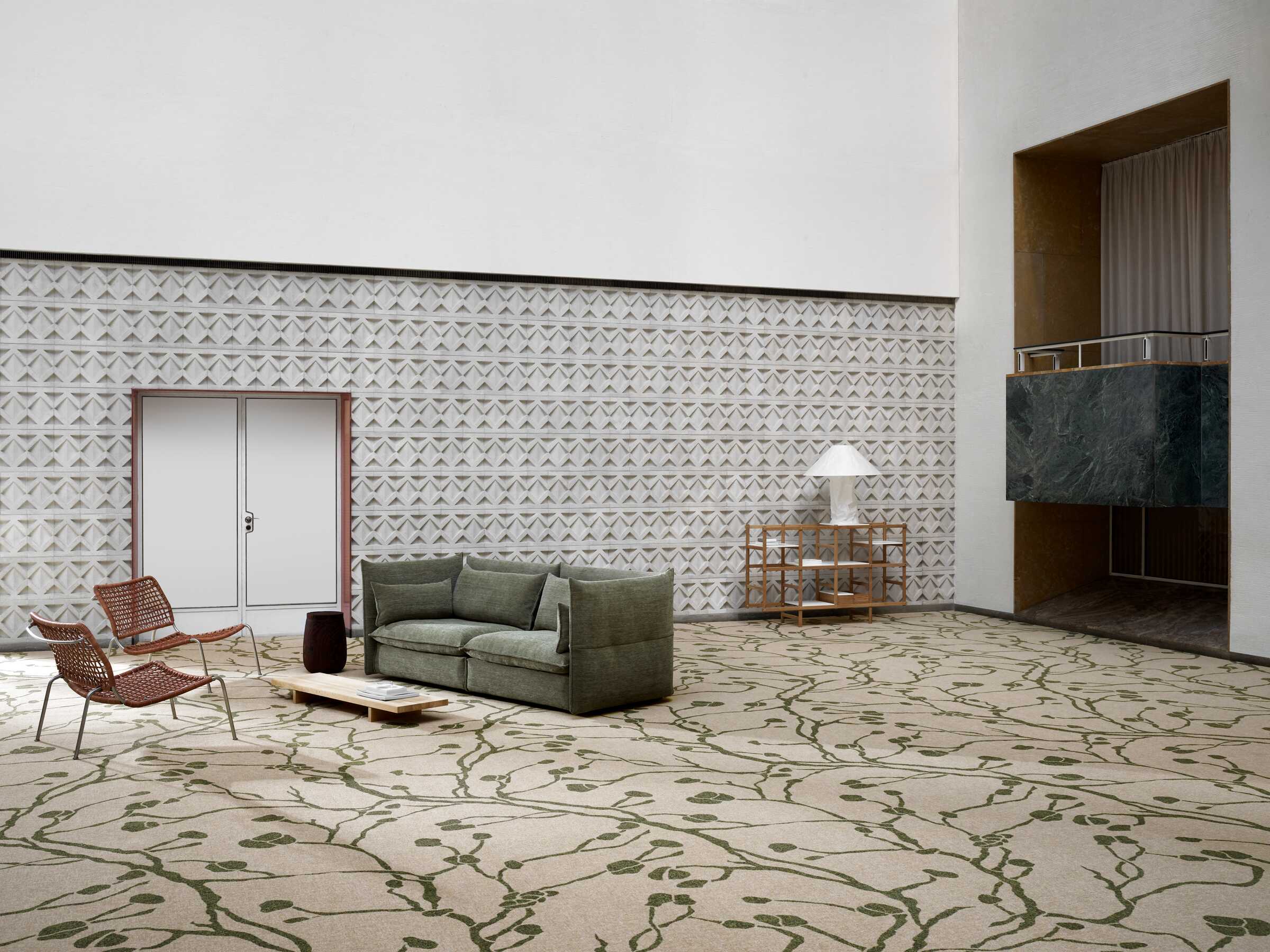 Tufted wall-to-wall carpet with wool pile material and Woven Textile backing. Millitron dyeing method. Total thickness: approx. 9,5 mm. Surface pile mass 1400 g/m2. Use classes according to CEN/TS 15398 : Class 33 – Commercial – Heavy.