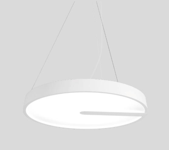 Suspended luminaire with 1500 mm cable suspension.