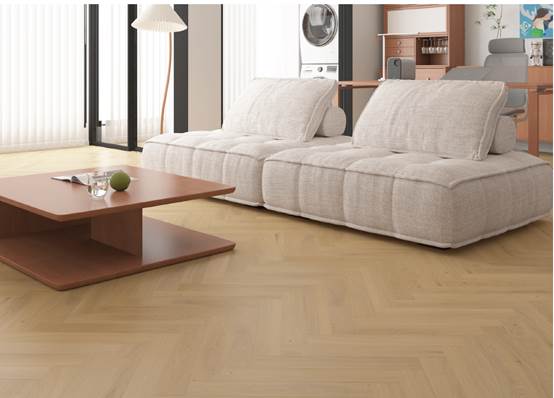 SPC flooring is made primarily from polyvinyl chloride (PVC), calcium carbonate (limestone), additives (such as lubricants, stabilizers, etc.). It is composed of one clear PVC embossed wear layer with a final UV coating, printing film layer for décor, substrate layer for structural strength and stability. It may include a backing (such as IXPE) to improve acoustic performance and increase comfort underfoot. The product is waterproof, easy to install and maintain. It is reliable and economical, and also environmentally friendly.
