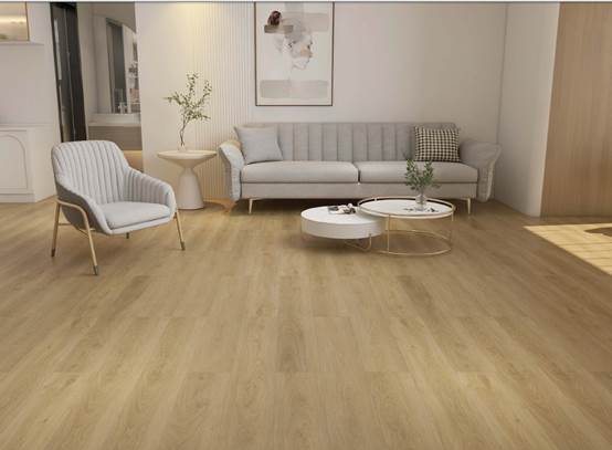 WPC flooring is made primarily from polyvinyl chloride (PVC), calcium carbonate (limestone), plasticizers, additives (such as pigments, lubricants, stabilizers, foaming agents, etc.). It is composed of one clear PVC embossed wear layer with a final UV coating, printing film layer for décor, substrate layer for structural strength and stability. It may include a backing (such as IXPE) to improve acoustic performance and increase comfort underfoot. The product is waterproof, easy to install and maintain. It is reliable and economical, and also environmentally friendly.