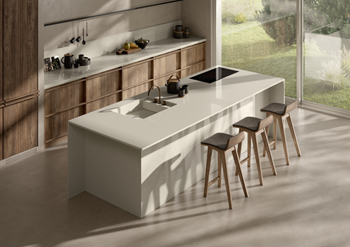 COSMOLITE® Materia Nuova is a recomposed material based on 100% pre-consumer recycled minerals. The production process includes the mixing of aggregates other than quartz with different granulometry and nature, organic dyes and polyester resin (about 8-10%).
