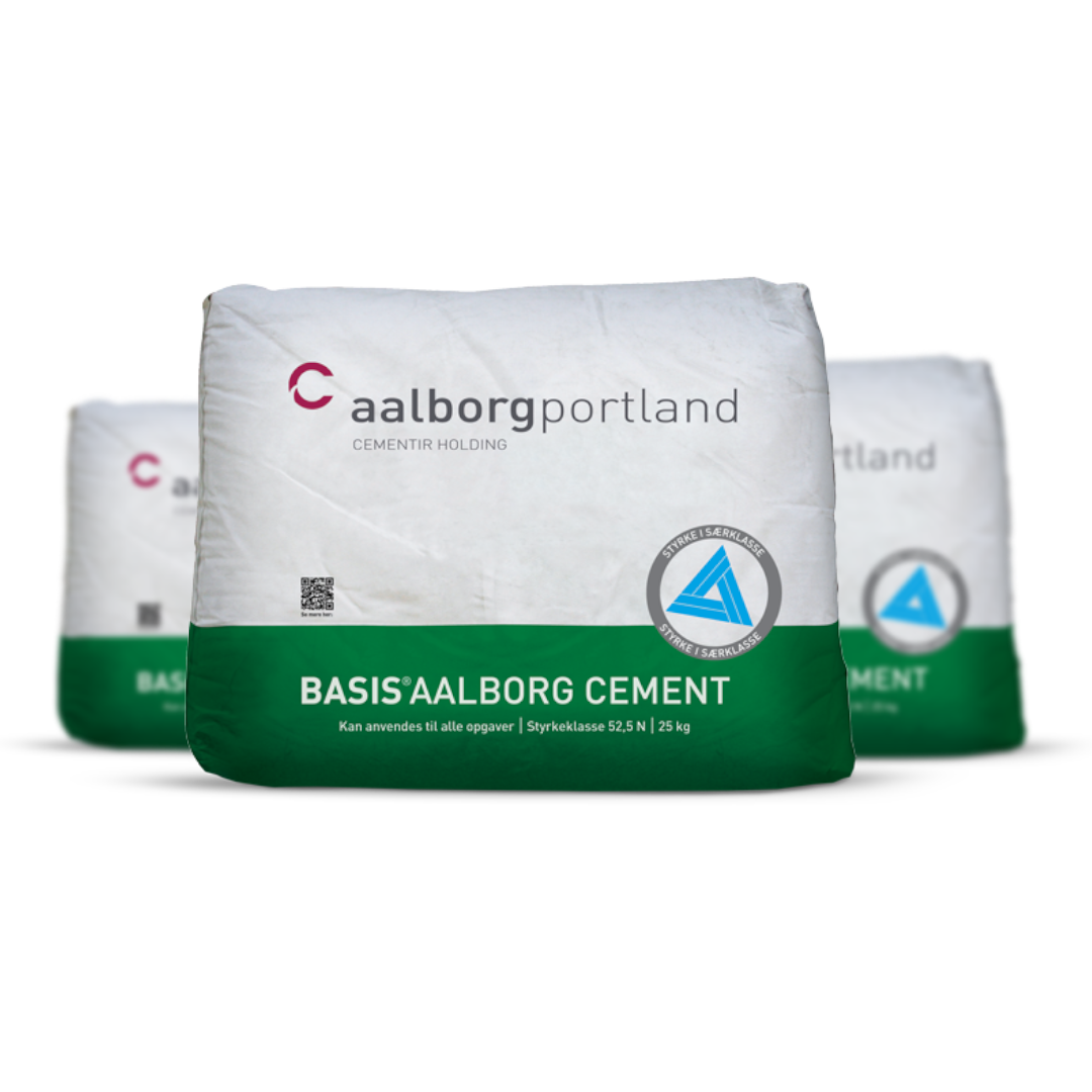 BASIS AALBORG cement is a grey Portland cement, with a strength class of 52.5 N, and characterized by a normal early strength and a high late strength. BASIS AALBORG cement can be used for most purposes but is especially suitable for use in concretes mixed on site and for masonry and plastering mortars.