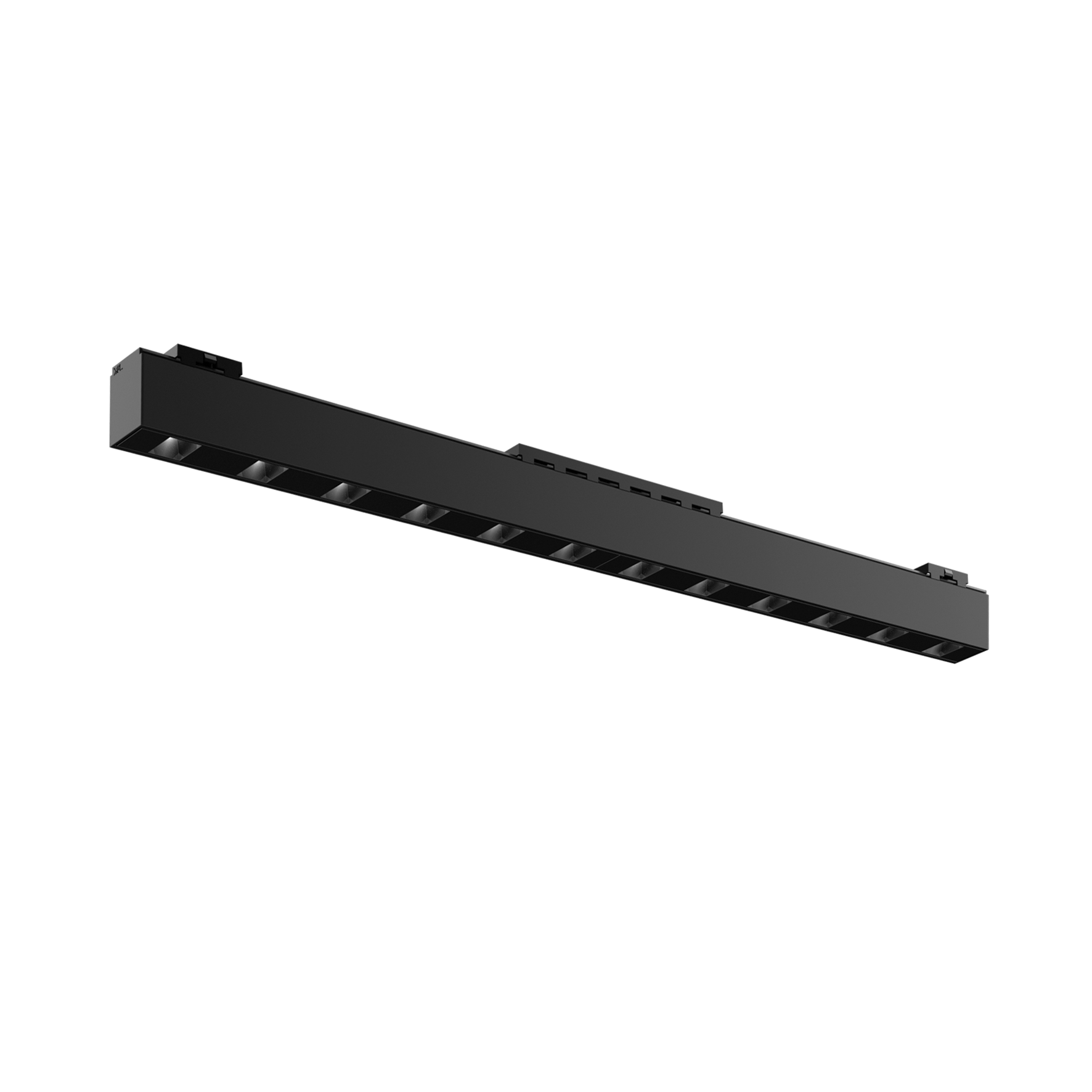 Linear light inset made of aluminium; light inset can be installed and moved without tools by means of magnetic holders+locking; surface anodised; flush with profile system; fitted with single LED light points; good glare reduction due to recessed light point plane; despite this increased efficiency through special lens technology; inserted lenses with medium radiation characteristic 31°; with CSP (Chip-Scale-Packaging) technology for maximum efficiency; energy-efficient LEDs withvery good colour rendering; hot plug protection