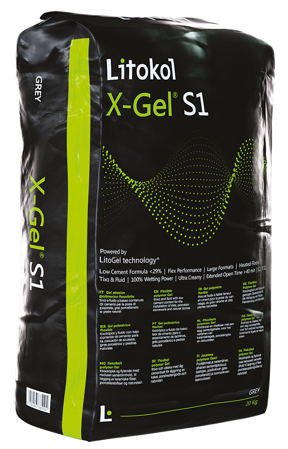 Fluidotixo® flexible polymeric Gel (1st generation) for the installation of ceramics, porcelain stoneware, and natural stones both indoors and outdoors. Designed for high application safety and thanks to state-of-the-art features, the mixture is extremely creamy, fluid, and thixotropic. It maintains its shape and thickness unchanged on floors and walls with a 100% wetting power, resistance to vertical slip, and an open time of over 40 min. It performs exceptionally well for installation on heated floors and over existing surfaces, ensuring superior adhesion even on challenging substrates. Classified as C2TE S1 – EN 12004.