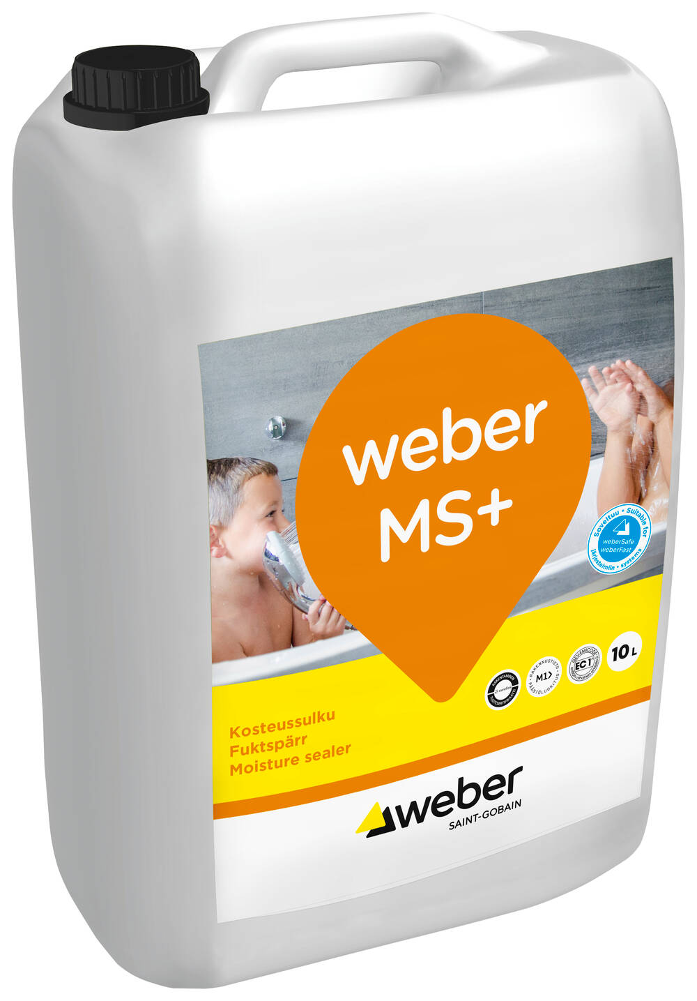 weber MS+ Moisture Sealer (FIN: weber MS+ Kosteussulku) is a plastic dispersion based moisture sealer and primer. The product is used for priming and moisture protection of walls, floors and, if necessary, ceilings in wet rooms before applying weber waterproofing or tiling. The product can be used as a primer before applying waterproofing compound, as a moisture sealer under the backsplash tiling in kitchen and on the walls of toilet before tiling, and as a moisture sealer for plasterboard floors before tiling. weber waterproofing work instructions should be followed. weber MS+ Moisture Sealer is part of weberSafe and weberFast waterproofing systems.
