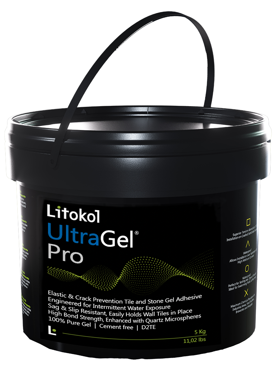 Ready-to-use, elastic, anti-crack multi-polymer Gel, with zero vertical slip and extended open time, designed for the installation of ceramic tiles, suitable for humid indoor environments, overlays and underfloor heating systems. UltraGel Pro comply with UNI EN 12004 as D2TE.