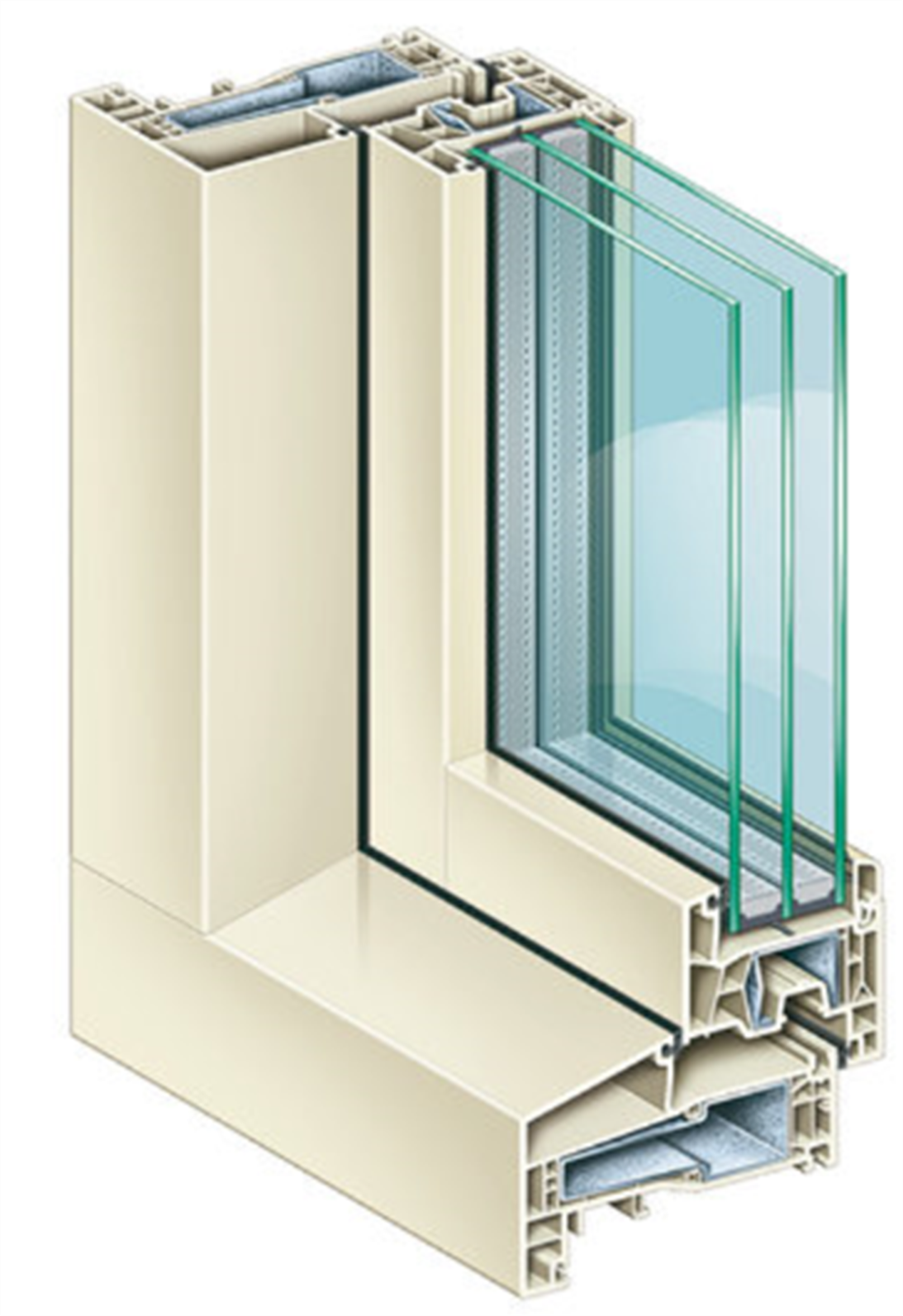 The K-Vision system, developed specifically for the Dutch market, is based on successful double-sealing systems. It is a widened window profile with beveled edges for perfect water drainage. The depth of the K-Vision window sash is 76 mm, so it can be glazed with a glass unit up to 50 mm thick, resulting in better sound and heat insulation.