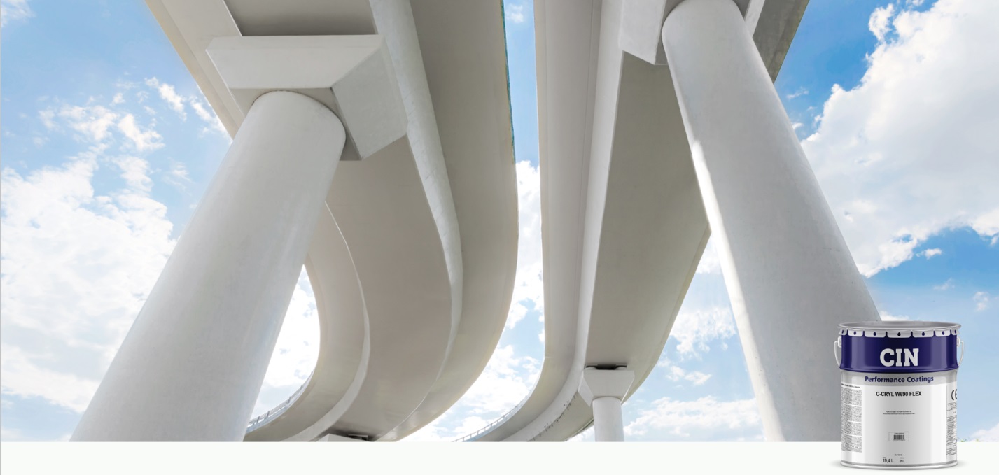 C-CRYL W690 FLEX is a flexible acrylic coating with a matte finish for the comprehensive protection of concrete structures. Formulated based on the most innovative technologies on the market, C-CRYL W690 FLEX is the solution for protection against the introduction of aggressive agents into concrete, moisture control and increased resistivity, with excellent anti-carbonation properties of concrete.