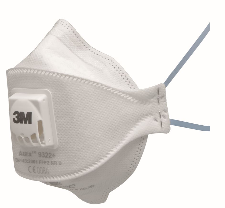 The 3M™ Aura™ Particulate Respirator 9322+ provides an FFP2 NR D protection level and provides effective respiratory protection for use in industries where workers will be exposed to particles. The respirator is CE Approved to EN 149:2001+A1:2009. Featuring our Aura™ 3-panel design, it’s engineered to accommodate facial movement during speech, and the high-performance filter material is engineered to let you breathe more easily. The 3M™ Cool Flow™ Exhalation Valve helps release warm and moist exhaled breath from inside the respirator. The adjustable nose clip curved low profile design and sculpted nose panel help ensure not only a secure seal and snug fit, but also a good field of vision and improved compatibility with 3M eyewear. The embossed top panel is designed to further minimise eyewear fogging, for clearer visibility with eyewear.