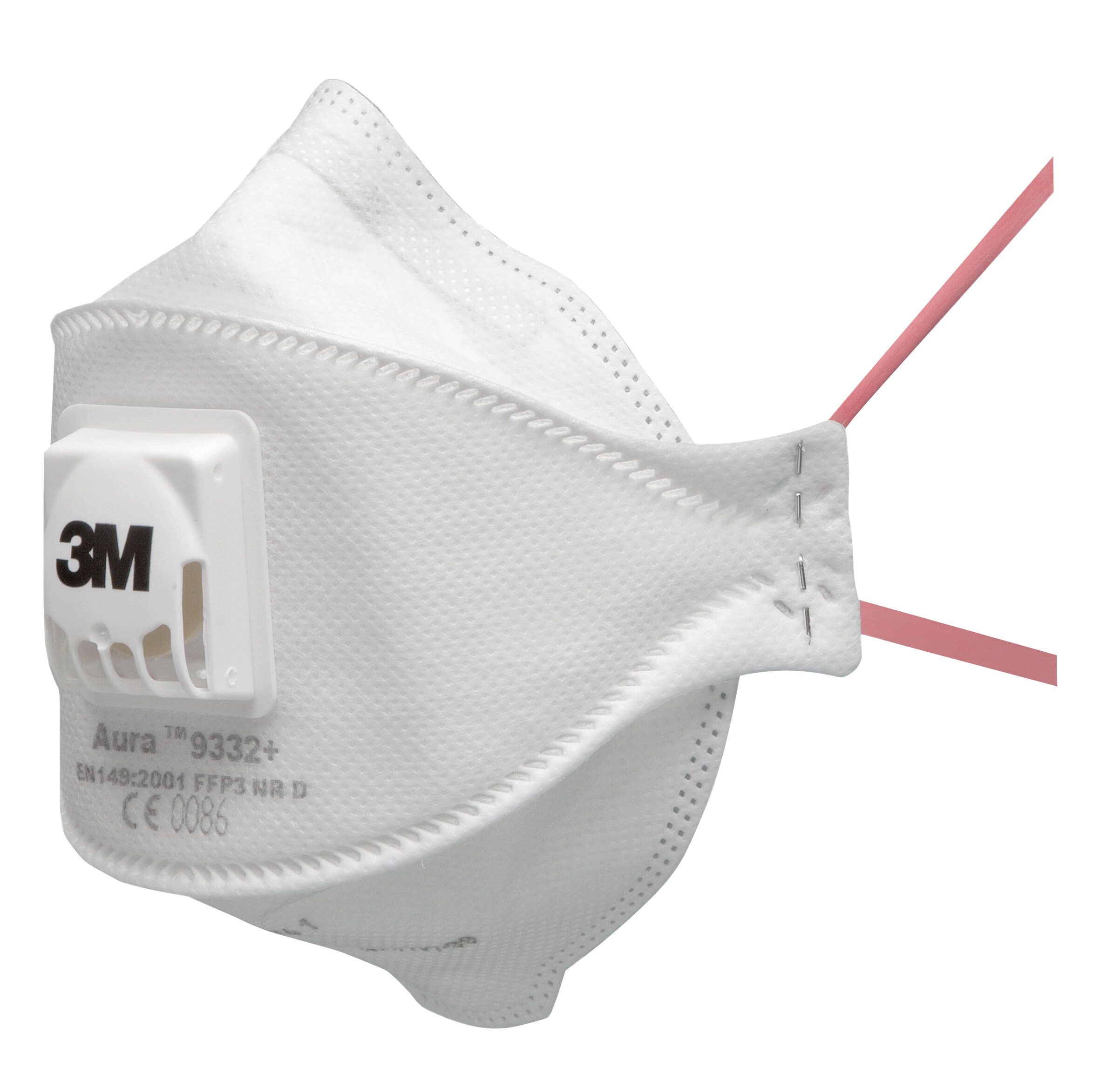 The 3M™ Aura™ Particulate Respirator 9332+ provides an FFP3 NR D protection level and provides effective respiratory protection for use in industries where workers will be exposed to particles. The respirator is CE Approved to EN 149:2001+A1:2009. Featuring our Aura™ 3-panel design, it’s engineered to accommodate facial movement during speech, and the high-performance filter material is engineered to let you breathe more easily. The 3M™ Cool Flow™ Exhalation Valve helps release warm and moist exhaled breath from inside the respirator. The adjustable nose clip curved low profile design and sculpted nose panel help ensure not only a secure seal and snug fit, but also a good field of vision and improved compatibility with 3M eyewear. The embossed top panel is designed to further minimise eyewear fogging, for clearer visibility with eyewear.