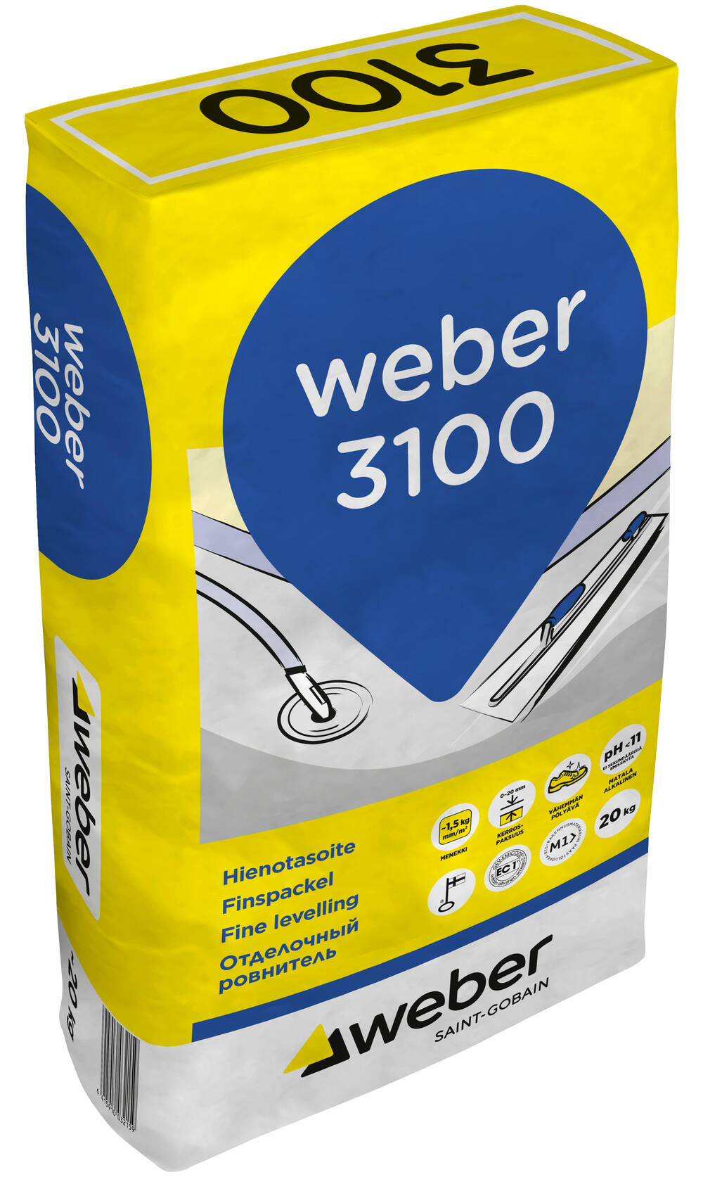 weber 3100 Fine Levelling is cement based floor screed for concrete substrates. It is used in finishing levelling of interior floors before the installation of the covering in apartments, offices and public buildings. It can be applied by hand or pump. The product is fast setting and enables fast covering.