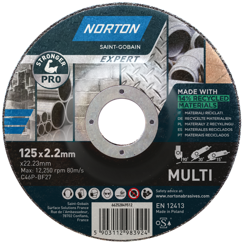 Norton® Expert “Stronger Pro” are pro quality discs for safe cutting & grinding of many different materials including metal, inox, stone, PVC, aluminium, ceramics and tiles.