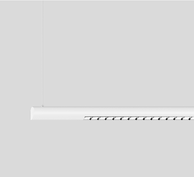 Cylindrical lighting system in aluminium. Available in four different sizes. (1181mm, 1474mm, 1963mm, 2351mm)