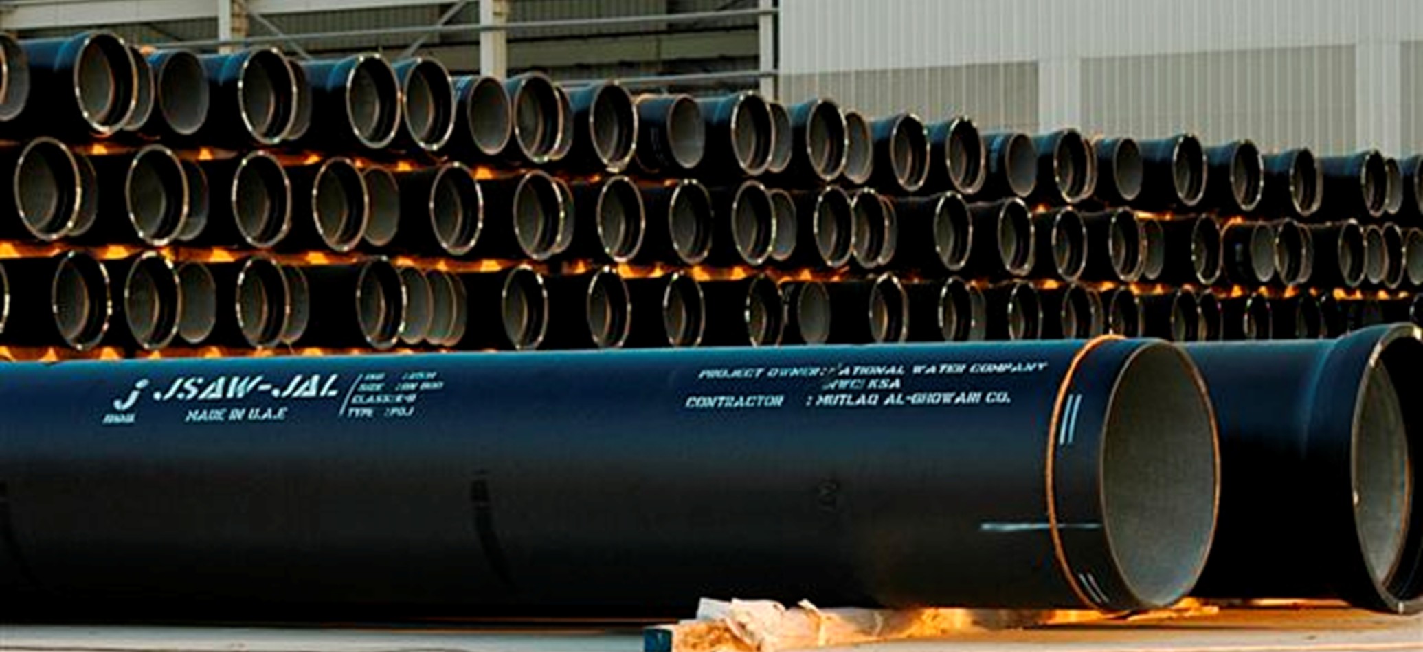 Ductile Iron pipes, belongs to the family of Cast Iron, is manufactured by treating the molten low-sulfur base iron with magnesium under closely controlled conditions. This process results in a startling change in the metal, characterized by the free graphite in Ductile Iron being deposited in the spheroidal or nodular form. This leads to maximum continuity of the metal matrix, thereby forming a stronger and tougher ductile material with high ductility and impact strength.
